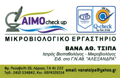 Μικροβιολογικές - Αιματολογικές - Ανοσολογικές εξετάσειςΚαρκινικοί δείκτες - Check upΑιμοληψίες κατ'οίκονΔέχεται Δευτέρα - Τετάρτη - Παρασκευή 07:30-14:00 και 18:00-20:30Τρίτη - Πέμπτη 07:30-14:00Σαββάτο κατόπιν ραντεβού.