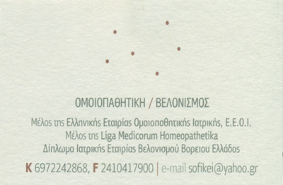 Ψυχίατρος - ΨυχοθεραπευτήςΟμοιοπαθητικός ΒελονισμόςΔέχεται καθημερινά με ραντεβού