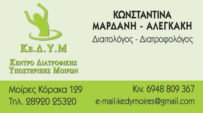ΚΕΝΤΡΟ ΔΙΑΤΡΟΦΙΚΗΣ ΥΠΟΣΤΗΡΙΞΗΣ ΜΟΙΡΩΝ - ΜΑΡΔΑΝΗ ΑΛΕΓΚΑΚΗ ΚΩΝΣΤΑΝΤΙΝΑ