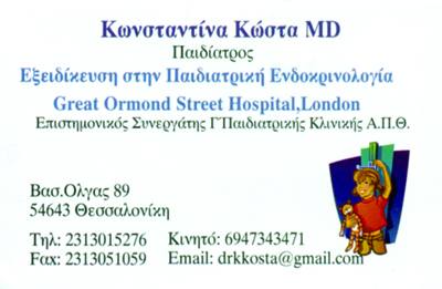 Εξειδίκευση στην Παιδική Ενδοκρινολογία & Παιδικό ΔιαβήτηΔέχεται καθημερινά πρωί & απόγευμα με ραντεβού