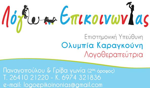 Το Κέντρο Ειδικών Θεραπειών "Λόγω... Επικοινωνίας" είναι ένας καινούριος χώρος στην πόλη του Αγρινίου και δημιουργήθηκε με σκοπό να προσφέρει υπηρεσίες- Αξιολόγησης,- Συμβουλευτικής και- Αποκατάστασηςσε παιδιά, εφήβους και ενήλικες με δυσκολίεςστο Λόγο, στην Κίνηση, στη Μάθηση και στη Συμπεριφορά.Η Διεπιστημονική ομάδα του κέντρου μας αποτελείται από άρτια εκπαιδευμένους θεραπευτές.Στόχος μας είναι η πολύπλευρη και ολοκληρωμένη αντιμετώπιση.Σκοπός μας, η ενεργητική στάση του παιδιού, αλλά και της οικογένειάς του στην αντιμετώπιση κάθε δυσκολίας.Οι υπηρεσίες που μπορείτε να βρείτε στο Κέντρο Ειδικών Θεραπειών "Λόγω... Επικοινωνίας" είναι:1. Λογοθεραπεία2. Εργοθεραπεία3. Συμβουλευτική - Ψυχολογική Υποστήριξη4. Ειδική Αγωγή