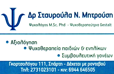 Διδάκτωρ Τμήματος Νοσηλευτικής Παν/μίου ΠελοποννήσουMaster Γνωστικής ΨυχολογίαςΔέχεται καθημερινά με ραντεβού