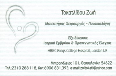 Εξειδίκευση στην Ιατρική ΕμβρύουΔιδάκτωρ Α.Π.Θ.Δέχονται καθημερινά με ραντεβού