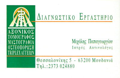 Αξονικός τομογράφος, έγχρωμο triplex αγγείων, ακτινογραφίες,οστεοπόρωση, εξετάσεις υπερήχων.Ωράριο: Τρίτη - Πέμπτη - Παρασκευή 10:30-20:00Δευτέρα - Πέμπτη 12:30-20:00