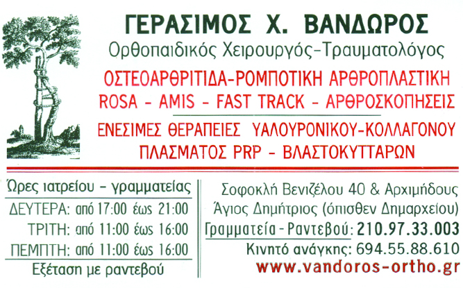 ΟΡΘΟΠΕΔΙΚΟΣ-ΧΕΙΡΟΥΡΓΟΙ ΟΡΘΟΠΕΔΙΚΟΙ